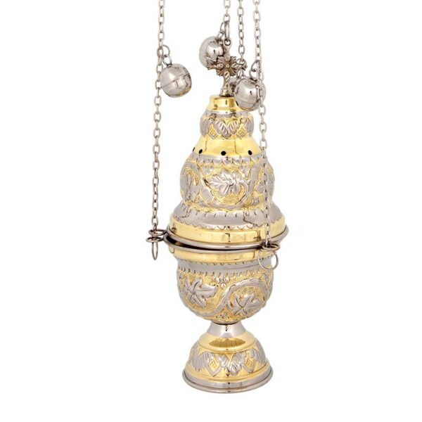 Церковна кадильниця двоколірна (латунь та нікель) різьблена (афінська).