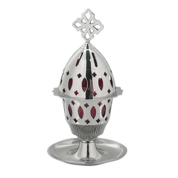 Звичайна нікельована домашня настільна лампа з блюдцем.