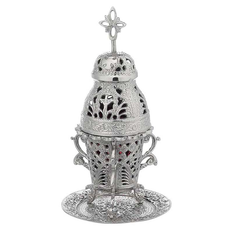 Настільна домашня нікельована різьблена лампа з блюдцем.