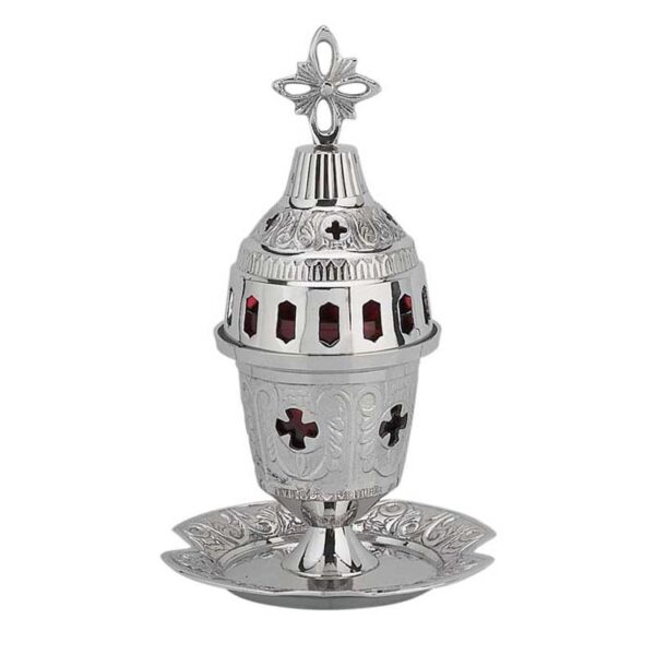Настільна домашня нікельована різьблена лампа з блюдцем.