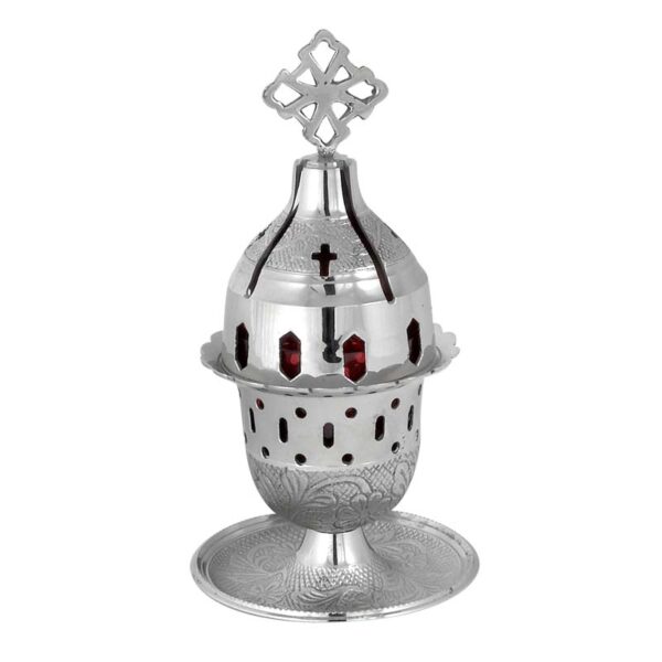 Настільна домашня нікельована різьблена лампа з блюдцем.