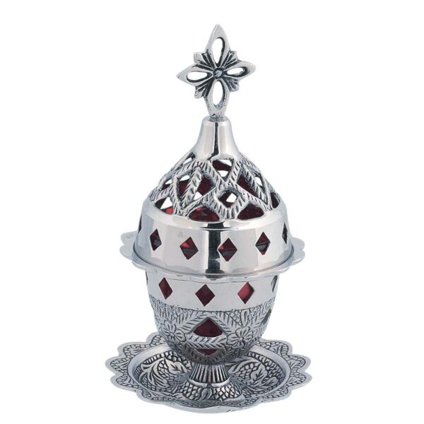 Настільна домашня нікельована різьблена лампа з блюдцем.