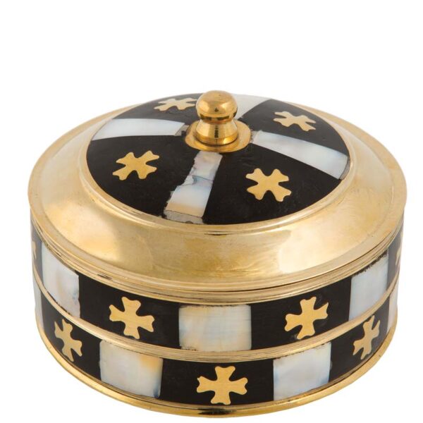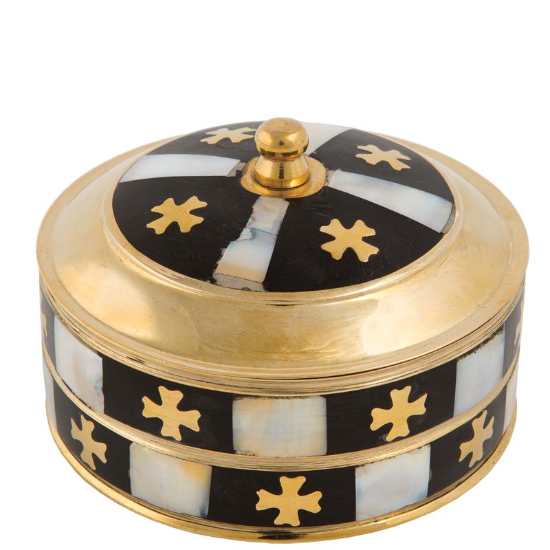 Кругла латунна коробка з перламутром.