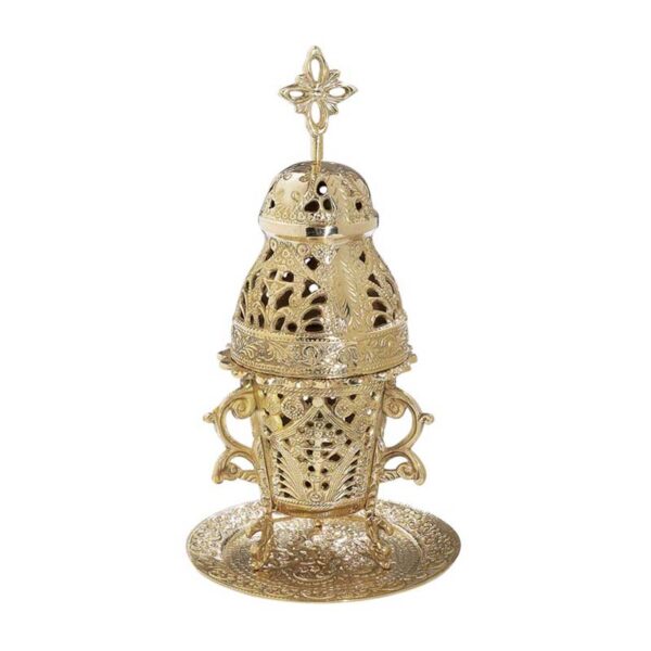 Настільна домашня лампа з різьбленої латуні з блюдцем.