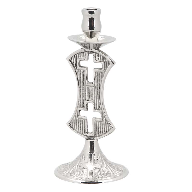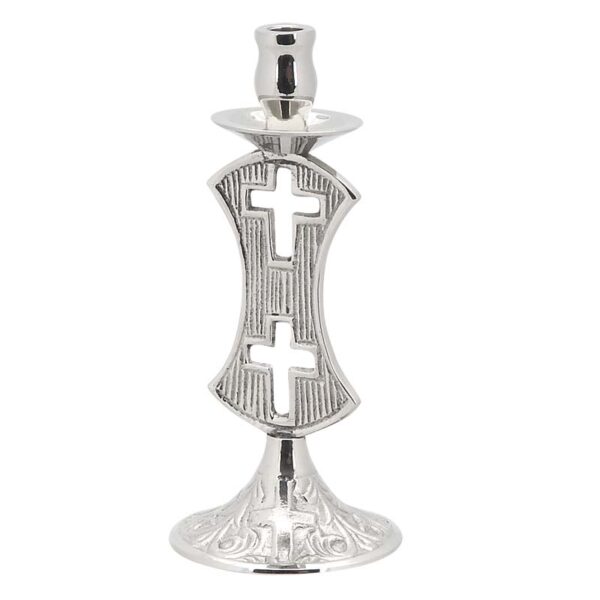 Односвічковий нікельований свічник з перфорованими хрестами.