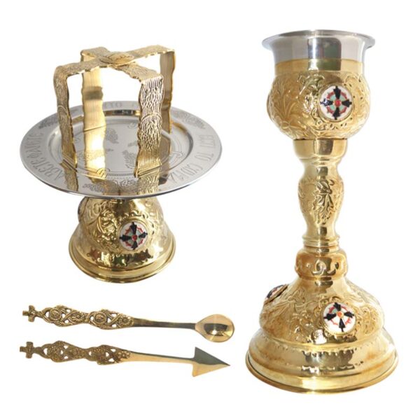 Євхаристичний набір латунний з 5 предметів зі смальтою: