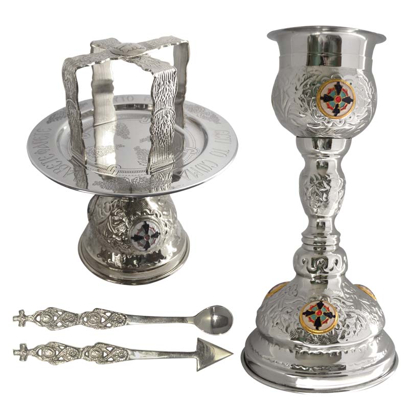 Євхаристичний набір нікельований з 5 предметів зі смальтою: