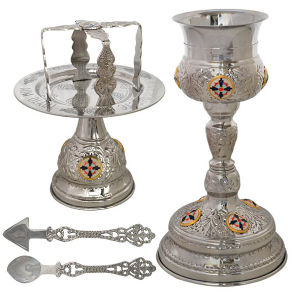 Євхаристичний набір нікельований із 5 предметів зі смальтою: